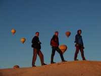 Ще одна спеціалізація Кападокії – то польоти на повітряних кулях. Цю «страву» туристам пропонують за 150 євро. В суму також включено легкий перекус та напої (гарячі чи «гарячительні» – не зміг зрозуміти підтексту). Стартують кулі перед самим світанком, близько 5-ї ранку. Практично одразу на нашим хостелом починається плато, з якого добре видно і сам Гереме з навколишніми долинами, і місця старту повітряних куль. Тому окремі фотоентузіасти з нашої команди поставили собі за мету зняти момент одразу після старту, коли уся та армада куль перебуває в одній площині, під променями вранішнього сонця, та на фоні фантастичних місцевих ландшафтів. Отже, у вівторок наш «улов» становив близько 70 куль у небі. Цікаво, скільки може бути куль у вихідні у високий сезон?